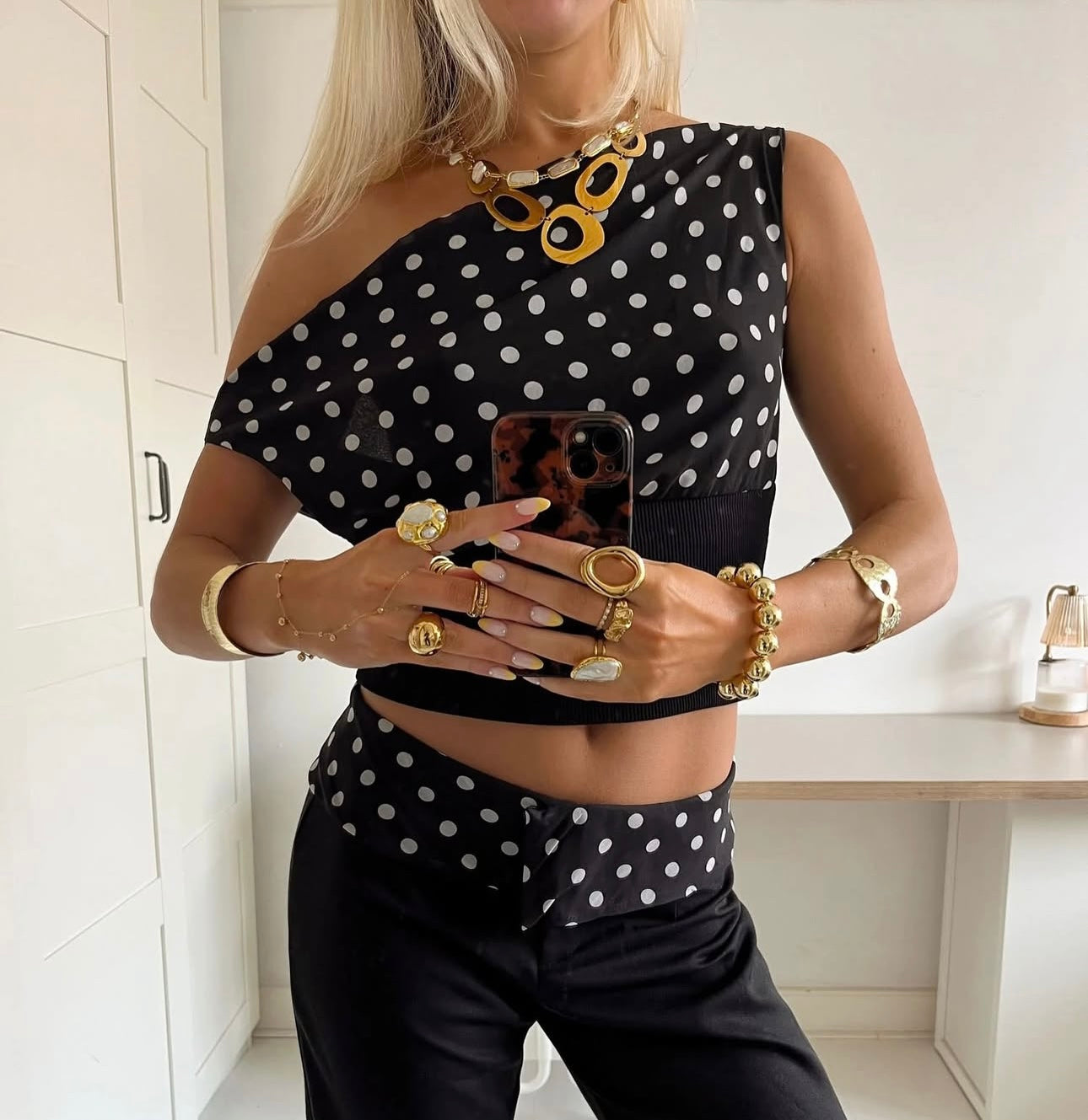 Make a statement without saying a word. This polka dot top blends playful charm with elevated comfort — perfect for both lounging and stepping out.