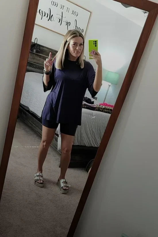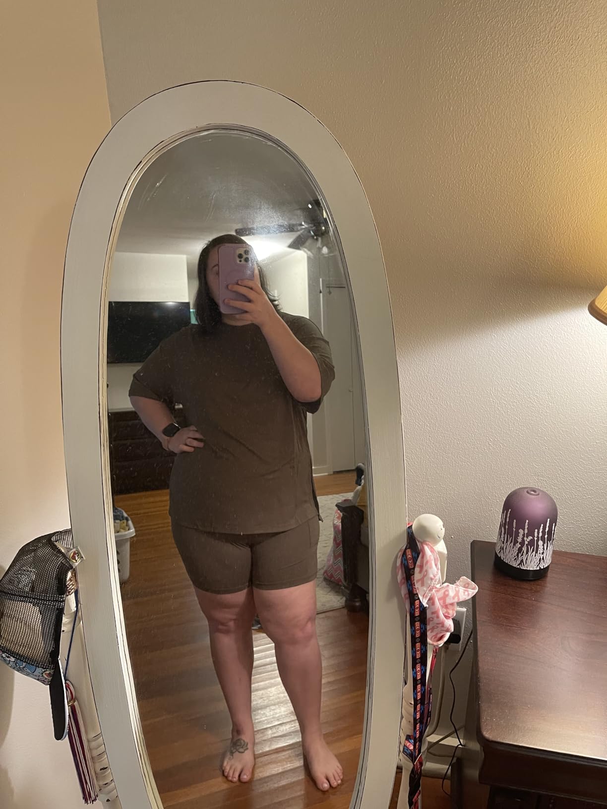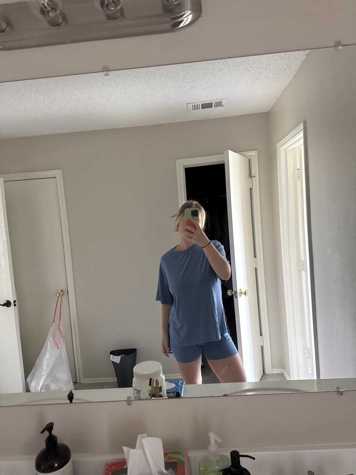 This outfit is super comfy and the fabric has a cool feeling to it. I honestly might just order more in other colors and live in them all summer! The shorts are a good length, not too long or short- I’m 5’4 186 pounds for reference. I took photos in two different lightings.