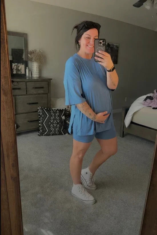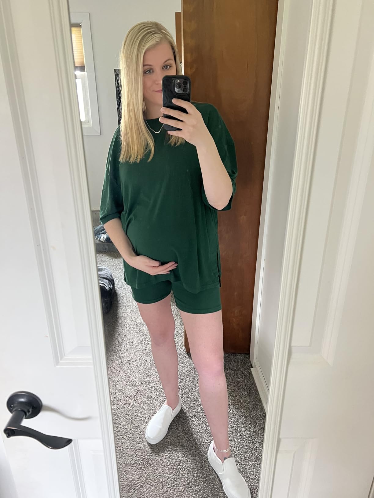 To all my pregnant mamas, buy the outfit! So soft and cozy, I can wear it around the house or dress it up a bit to go out to eat. Seriously so soft and stretchy for the growing baby bump, and perfect for summer. Will definitely be buying in more colors. I am 5’9 and 200lbs!
